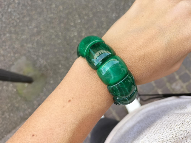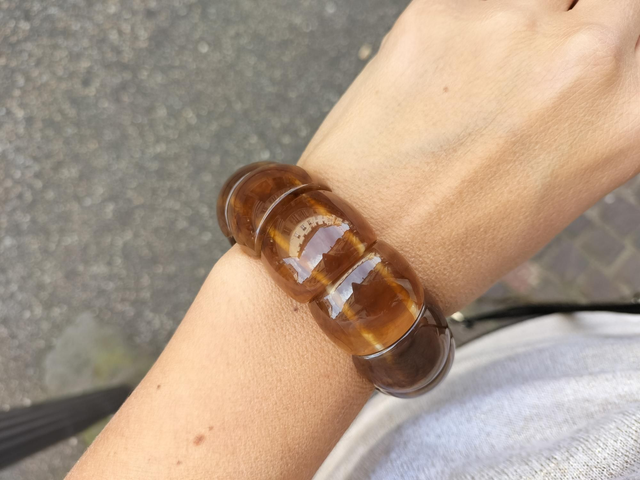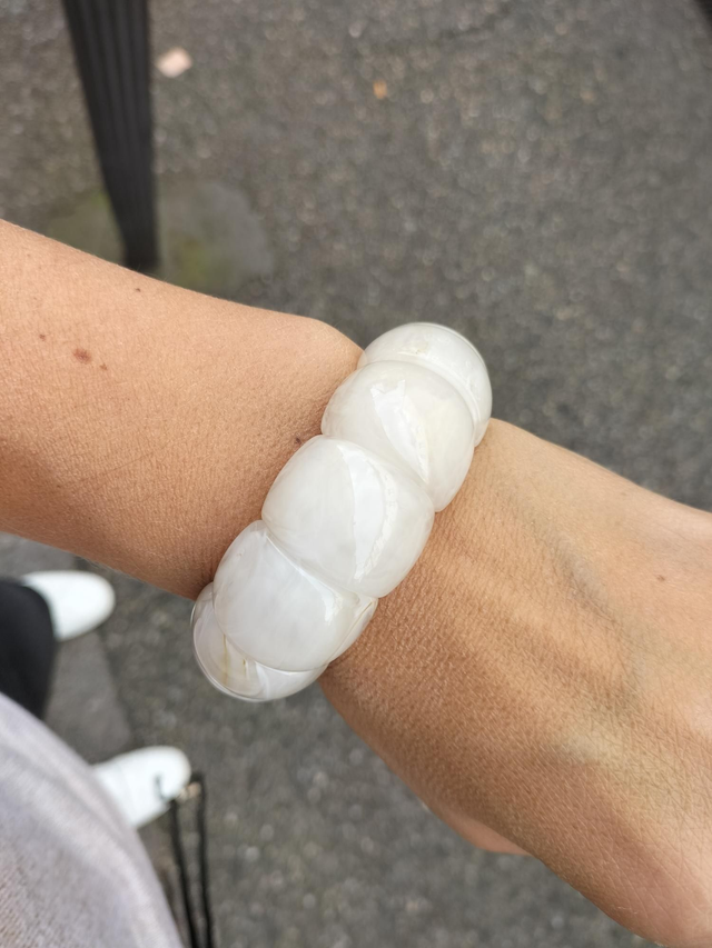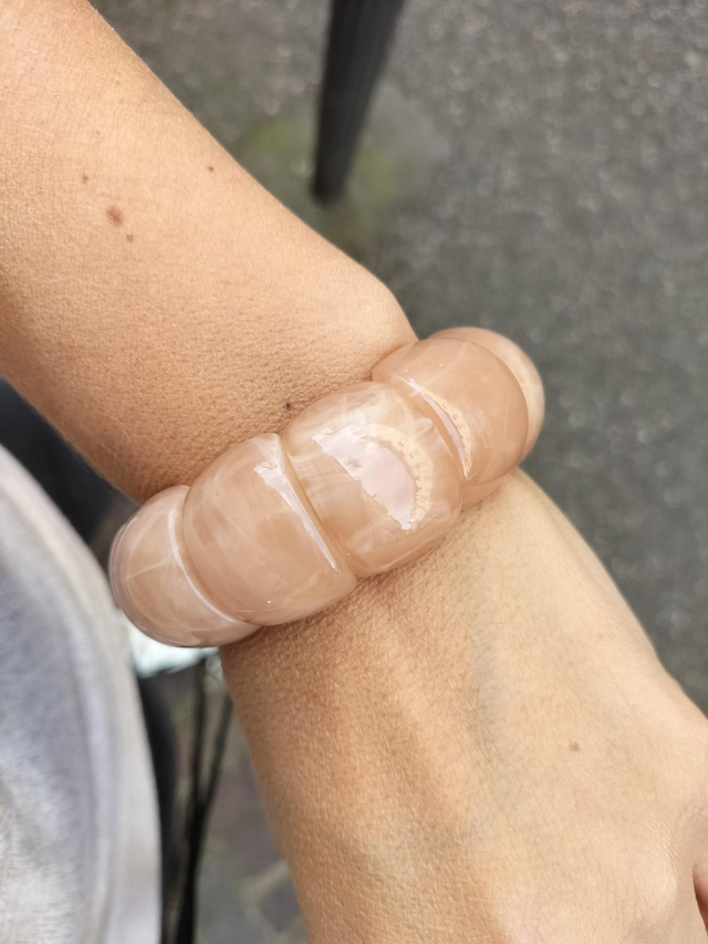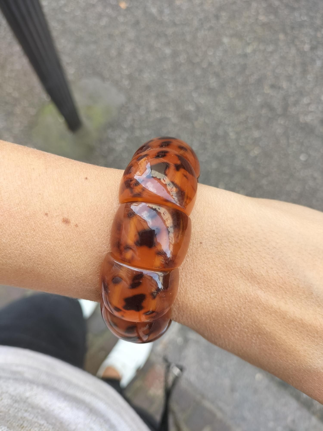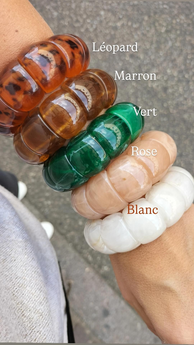 Bracelet élastique type manchette composé de grandes pièces en acétate.