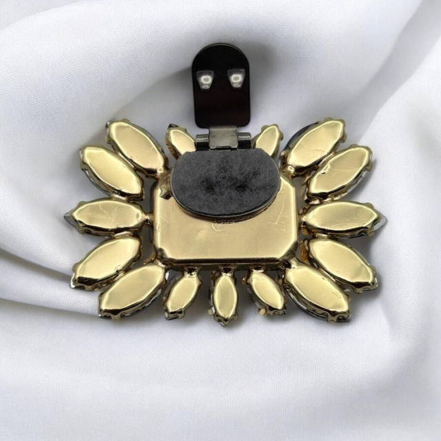 Pensé comme une broche rétro-chic revisitée, ce clip s’adapte à toutes les envies : veste, foulard, sac ou paire d’escarpins.