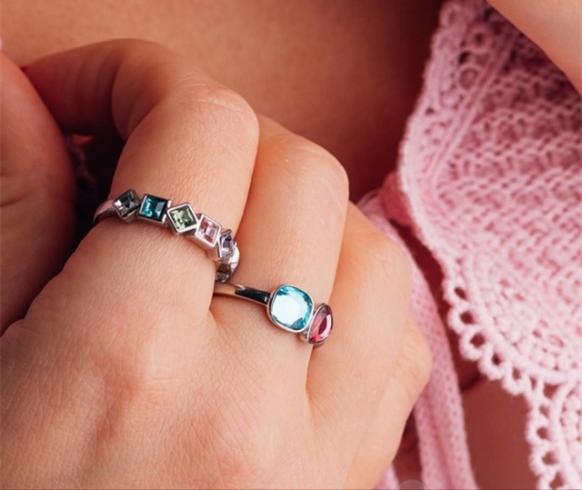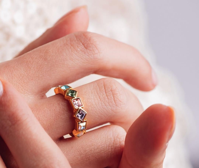 Le design est élégant et incrusté de différentes pierres multicolores sur le dessus.
