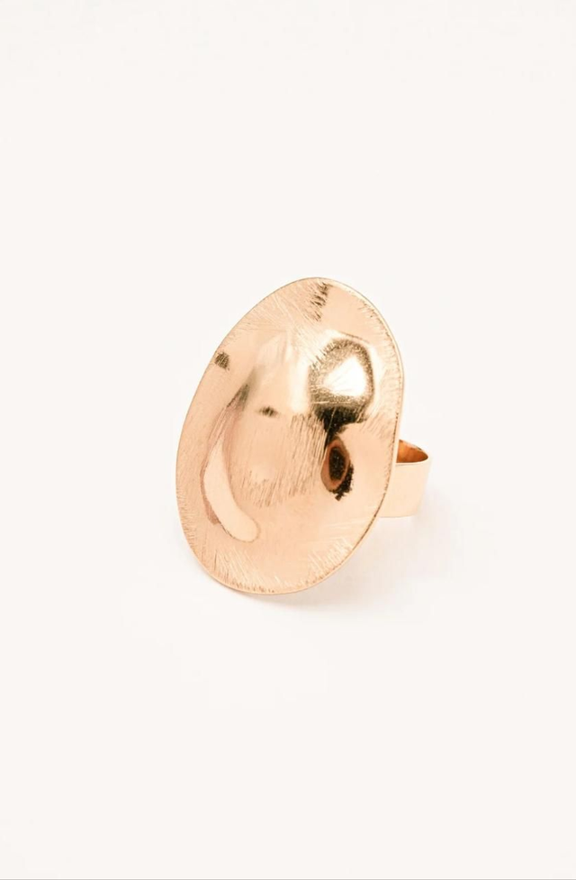 Bague en acier inoxydable composée d'une grande pièce légèrement ondulée et effet brossée.