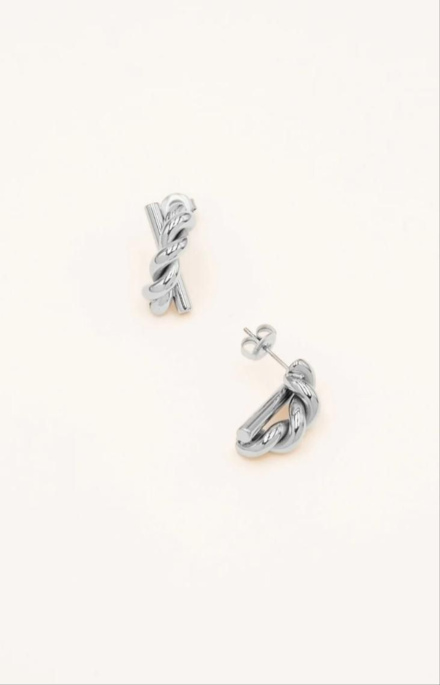 Boucles d'oreilles à puce en acier inoxydable composées d'une barre et d'une forme torsadée.