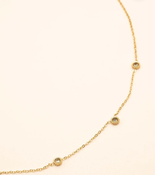Collier en acier inoxydable orné de trois petits oxydes de zirconium.